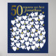 Una maravillosa idea de regalo de cumpleaños número 50. Este fantástico póster contiene 50 corazones para que los llenes con 50 mensajes cortos de amor. Perfecto como regalo de cumpleaños número 50 de parte de la familia, o para usar en una fiesta de cincuenta años como libro de invitados. La paleta de colores es azul oscuro con texto y corazones en dorado y blanco. Imprime en tamaño grande para tener mucho espacio para escribir dentro de los corazones.