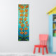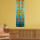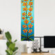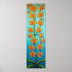 Pintura estilizada de orquídeas naranjas de color ocaso sobre un llamativo fondo azul/azul celeste.