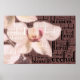 Se ha suavizado y alterado digitalmente una fotografía de cierre de orquídeas de falaenopsis blanca con un collage de palabras ~ floral, orquídea y flor.