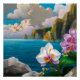 Póster Orquídeas tropicales, océano, acantilados y nubes