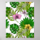 Póster Orquídeas y hojas de palma, rosas, amarillas, verd