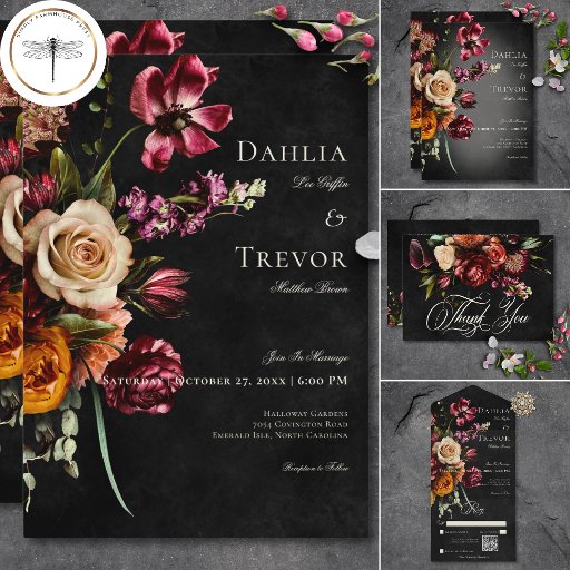 Dark Elegant Autumn Floral WeddingDiseñado por Kathe Santillo