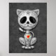 El gatito gris adorable está decorado con motivos de remolinos y puntos. Pequeños pedales de flores rodean los ojos puros negros en la tradición del Día de los Cacahuetes de azúcar Muertos. El gato está sentado, mirando hacia adelante con la cola ondeando en el fondo. La cabeza sobredimensionada se sienta sobre un pequeño cuerpo que crea una apariencia juguetona y personalizado. Una estrella de cinco puntos se sienta en medio de la frente del gatito, mientras que un corazón rojo brillante y amarillo aparece en el centro del pecho. Este lindo gato es un diseño divertido y elegante inspirado en los hermosos patrones de los cráneos del azúcar del Día de los Muertos.