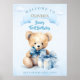 Haz que la celebración del hito de tu hijo sea aún más especial con este cartel de cumpleaños personalizable. Diseñado con un suave estilo de acuarela, presenta un adorable osito de peluche sentado junto a un regalo con una hermosa cinta azul, listo para saludar a tus invitados. Este cartel versátil sirve como una hermosa decoración para la fiesta, perfecto para exhibir en la entrada, cerca de la mesa de pastel o como telón de fondo para fotos. Personalízalo con el nombre del niño y la fecha de la fiesta para crear un punto focal emotivo para su "Cumpleaños Beary Primero".