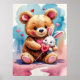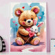 Difunde amor y alegría con este adorable cartel que presenta a un osito de peluche abrazando a un conejo rodeado de corazones en un estilo acuarela. Perfecto para guarderías, habitaciones de niños o como un regalo dulce para alguien especial, esta obra de arte añade calidez y felicidad a cualquier espacio.
