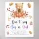 ¡Celebra con este fiesta de ducha de bebé con temática de oso de peluche! Watercolor lindo oso de peluche con una calabaza de otoño en sus patas se sienta en el follaje de otoño. Elementos coincidentes disponibles.