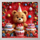 Póster Oso de cumpleaños con pastel y globos