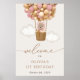 Póster Oso lindo, globos rosados, bienvenida de primer cu