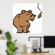 Póster Oso marrón con vida silvestre de hojas caídas en o