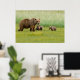 Póster Oso marrón de Alaska con oseznos en un prado