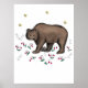 Póster Oso Marrón Y Ilustracion De Fresas Forestales