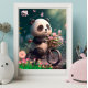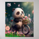 Póster Oso panda lindo montando una bicicleta con flores