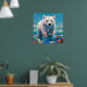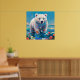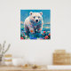 Un oso polar con hocico redondo, piernas cortas y un comportamiento adorable y amistoso.