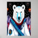 Póster Oso polar con uniforme y fuegos artificiales | Art