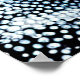 Oso polar sentado contra un fondo oscuro y estrellado. El oso está representado en un patrón colorido de puntos que le da una apariencia juguetona y caprichosa. Lleva una bufanda naranja vibrante que añade calidez a la escena. El suelo nevado debajo del oso también está ilustrado con una textura punteada, y las estrellas circundantes y los puntos coloridos crean una atmósfera festiva e invernal. El efecto general es brillante y alegre, combinando elementos de la naturaleza con la expresión artística.