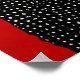 Dos osos estilizados, uno negro y otro blanco, se abrazan. Los osos están diseñados con un patrón único de puntos que les da textura y profundidad. Sus rostros están centrados y colocados amorosamente cerca uno del otro, mostrando orejas redondas y rasgos suavemente definidos. El fondo es un rojo intenso, que crea un marcado contraste con los osos. Puntos más pequeños en un tono más claro se dispersan por el fondo, añadiendo un toque caprichoso a la composición general. La escena evoca sentimientos de calidez, unidad y amor.