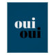 "oui oui" arte tipográfico de inspiración francesa perfecto para baño o cuarto de baño en azul oscuro, blanco y negro.