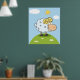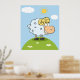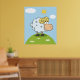Una oveja al estilo personalizado con una sonrisa divertida en lo alto de una colina. Este diseño parece realmente efectivo en este Poster