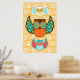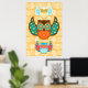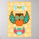 Three colorful owls on a pattern of owls, flowers and leaves - click CUSTOMIZE to change the background from pale orange to any color you'd like! Makes a great gift for any owl lover, bird lover or animal lover... totally unique because it's my own original artwork