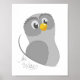 Un bonito búho de una colección de 4 adorables ilustraciones animales con una inspiradora cita de posters de arte mural para la habitación de los niños.