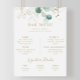 Complementa tu clásico evento de boda con este menú de barra de boda de eucalipto dorado y verde. El diseño presenta elegantes hojas de eucalipto doradas y verdes en acuarela.
