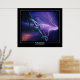 P-38 Poster del diablo de la horquilla luminosa con el luchador de la Segunda Guerra Mundial volando a través de una tormenta relámpago