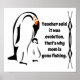 Padre del emperador Pingüino junto a su hijo. Las imágenes se han hecho en un sencillo estilo de lápiz negro y orgánico. El pingüino de papá y la chica joven se han hecho en línea negra, y el pingüino adulto macho tiene un naranja de color en el cuello. Concedo que no estoy realmente seguro del sexo de la chica bebé, podría ser un niño o un chica. A la derecha está la frontera tribal negra. Entre la frontera y el pingüino, hay un espacio vacío con un texto cambiable que dice: "El profesor dijo que era evolución, por eso mamá se fue de pesca".