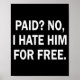 Póster Paid No I Hate Him For - Funny Sarcasm
