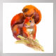 Póster Painted Alert Red Squirrel On A Branch Rustic