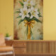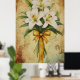 Póster Painting of a bouquet of white lilies with a gold