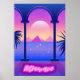 Un conjunto de paisajes abstractos poster en el estilo retro futurismo Ola retro y colores ciberpunk neón, columnas griegas y una estatua