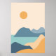 Conjunto estético de paisaje natural abstracto moderno con montaña, bosque, mar, cielo, sol y río. plantilla de portada minimalista del poster boho. Diseño para impresión, postales, papel pintado, arte mural.