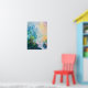 Esta obra de arte vívida y etérea captura un paisaje surrealista de montañas abstractas y envueltas en niebla y árboles delicados y bien alineados que emergen de nubes vibrantes y multicolores. La composición está salpicada de tonos pastel translúcidos, que van desde amarillos suaves y rosados rosas hasta indio rico, turquesa y verde esmeralda. La parte inferior de la imagen muestra un acantilado con intrincadas siluetas arbóreas en tonos azul profundo y negro, mientras que un centro naranja brillante ilumina el fondo medio con una ráfaga de luz radiante. El fondo se desvanece en formas suaves y flotantes de montaña que se disuelven en las nubes, creando una atmósfera mágica y casi de otro mundo. La escena se siente sin peso, como un espejismo de acuarela donde la naturaleza se convierte en una fantasía viviente. Perfecto para los que se sienten atraídos por las obras de arte inspiradas en la naturaleza con un toque surrealista e imaginativo.
