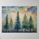 Póster Paisaje de los bosques acuarelas, pinos al atardec