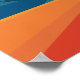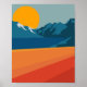 Este elegante poster presenta un ilustracion colorido y audaz de un paisaje de montaña retro en rojo, naranja y azul.
