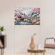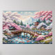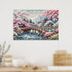 Póster Paisaje japonés con árboles de Bridge, Koi y Sakur