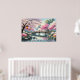 Póster Paisaje japonés con árboles de Bridge, Koi y Sakur