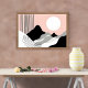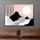 Esta minimalista obra de arte abstracta presenta montañas onduladas en tonos blancos y negros, con un suave fondo rosa. Un gran círculo blanco representa el sol naciente, añadiendo un toque de calidez y serenidad a la escena. Las líneas depuradas y las formas simples crean una estética moderna y elegante que complementa cualquier espacio interior.