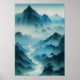 Póster Paisaje Verde azulado de niebla azul pintado en Ch