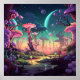 Póster psicodélico con paisajes fantásticos, personaje místico