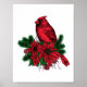 Ilustracion vector dibujado a mano de un pájaro cardinal sobre un ramo de Poinsettia, ranchos de abetos y bayas