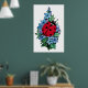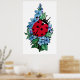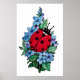 Póster Pájaro De Ladybird Acuarela Con Flores Salvajes Az