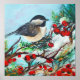Pollo De Tapa Negra Con Bayas En El Poster De La Rama. El diseño de este poster es de un adorable cuadro de varas de invierno. ¡Perfecto para la naturaleza y el amante de las aves! Esta obra de arte también está disponible en otros productos para mezclar y emparejar de JennsEmporium. Impreso como poster brillante.
