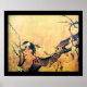 Póster PÁJARO DE PRIMAVERA Y ÁRBOL DE FLORES Amarillo Mar