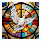 vidrio manchado de paloma blanca, pájaro colorido en vuelo, arte de vidrios multicolor, espíritu fantasma santo multicolor, sacramento de confirmación, símbolo cristiano católico religioso, signo de paz pacífico, círculo de la ventana de la iglesia cristiana, pentecostés, iconografía bíblica sagrada
