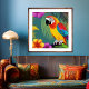 Póster Pájaro loro palmas tropicales florales azul púrpur