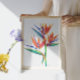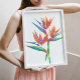 Ave Tropical Del Poster De Dibujo Del Paraíso. Árbol de colorido pájaro de flores del paraíso con colores verde naranja y azul. Arte de Inanna Serene Smith.