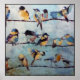 Una variedad de pequeños pájaros coloridos encaramados en un alambre