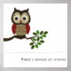 este lindo búho personalizado sentado en una rama con hojas verdes está sobre un fondo blanco. Hay un dicho en la parte inferior que dice "siempre hay una respuesta
