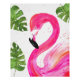 Obra de arte en acuarela de flamingo. Ilustracion flamingo pintado a mano, rosa, hojas de palma, poster giratoria.